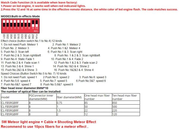 Zestaw „Efekt Meteor” składa się z generatora światła oraz 10 wiązek światłowodów.